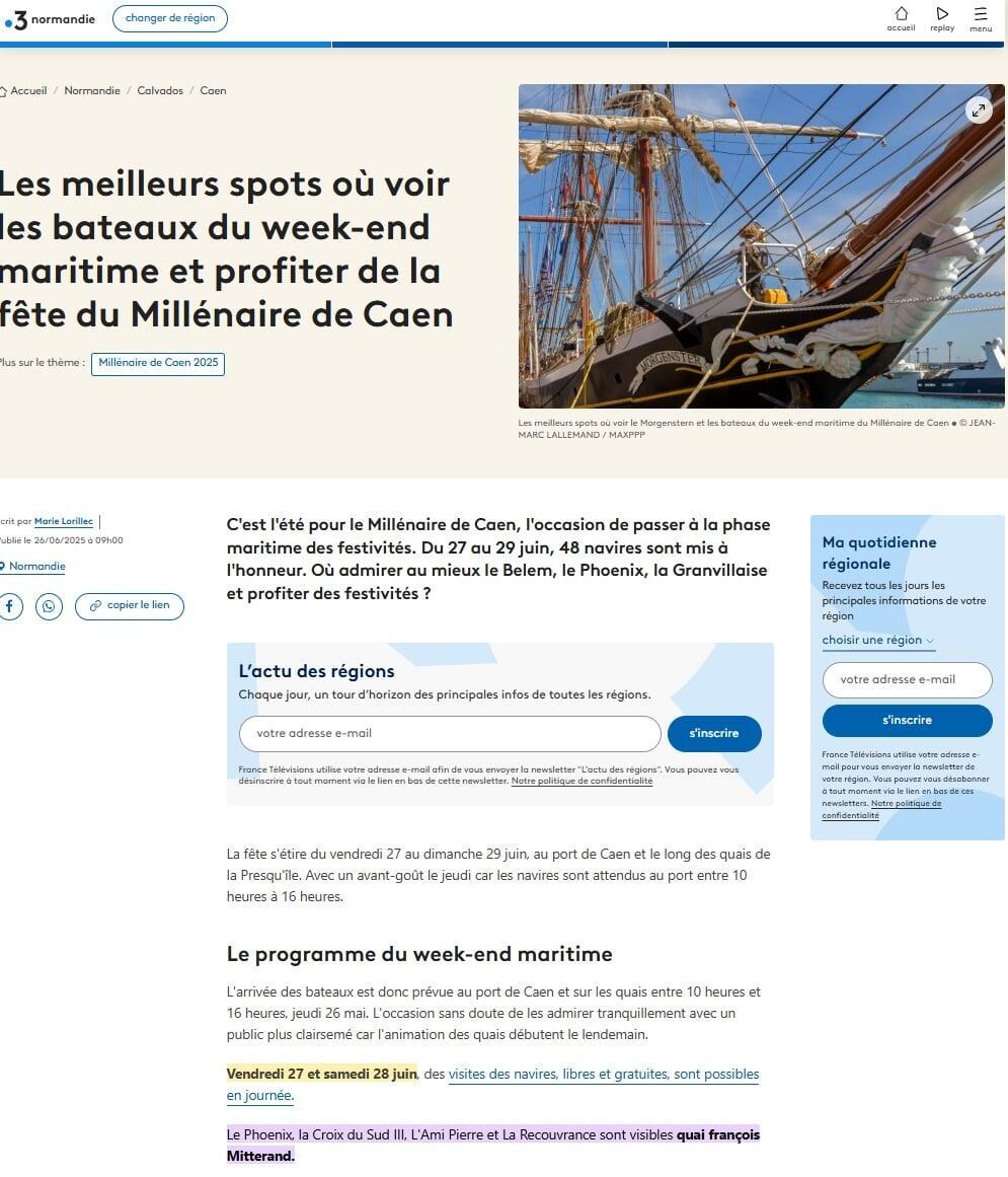 Le navire Phoenix a participé à un événement exceptionnel et inoubliable : le Millénaire de Caen.
