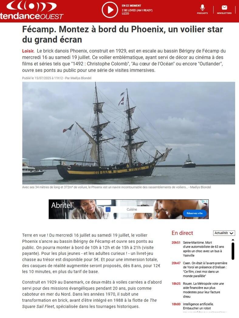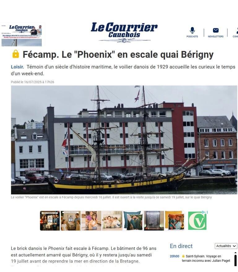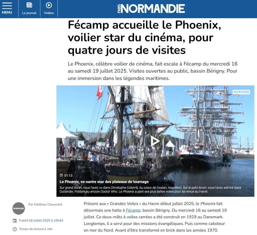 Le vieux gréement Phoenix a fait escale à Fécamp, offrant des visites du navire à quai. Cet événement a permis aux visiteurs de découvrir l'histoire fascinante du Phoenix et de plonger dans l'univers des voiliers traditionnels. Quelques articles de presse racontent notre visite.